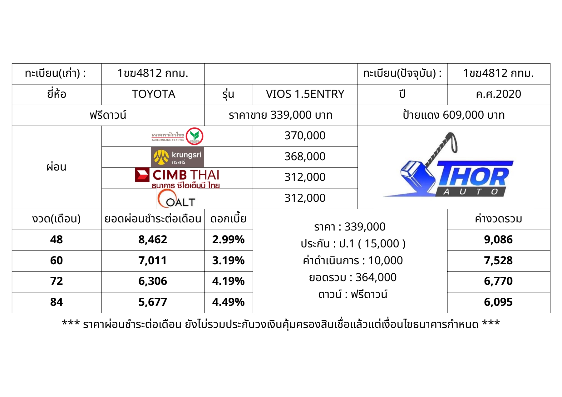 รุ่น: วีออส 1.5 เอนทรี่ (Vios 1.5 Entry) / ปี 2020