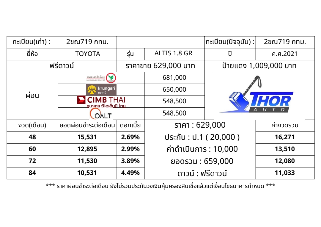 รุ่น: โคโรลล่า อัลติส 1.8 จีอาร์ สปอร์ต (Corolla Altis 1.8 GR Sport) / ปี 2021 (โฉมที่ 12 / TNGA)